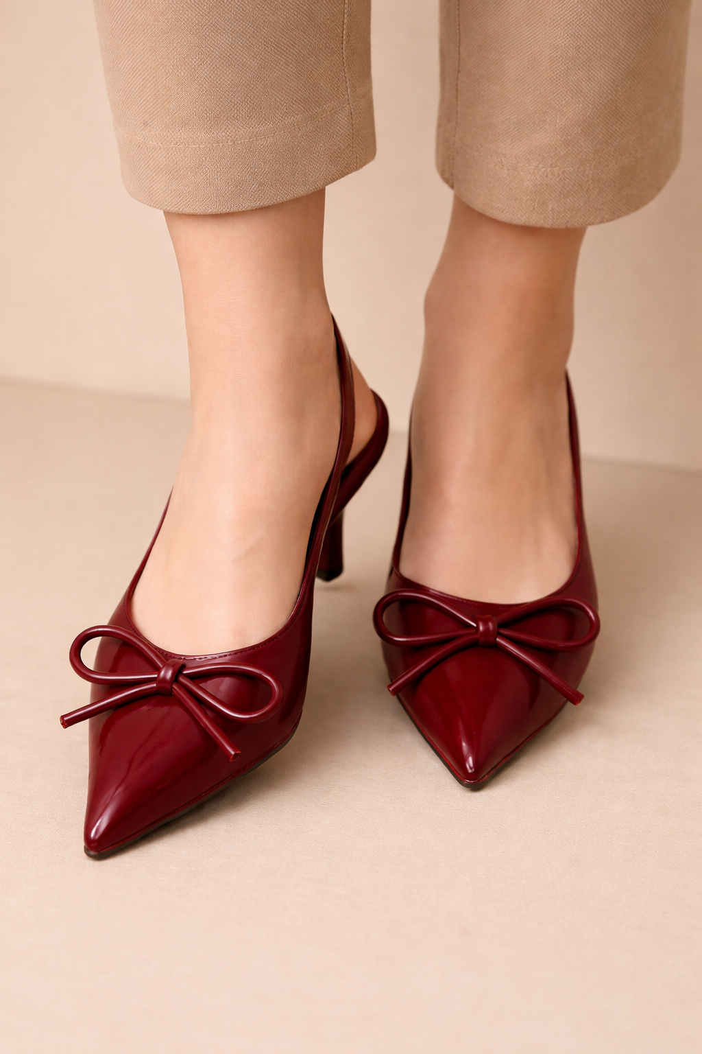 Noir Bow Heels - Cherry Red
